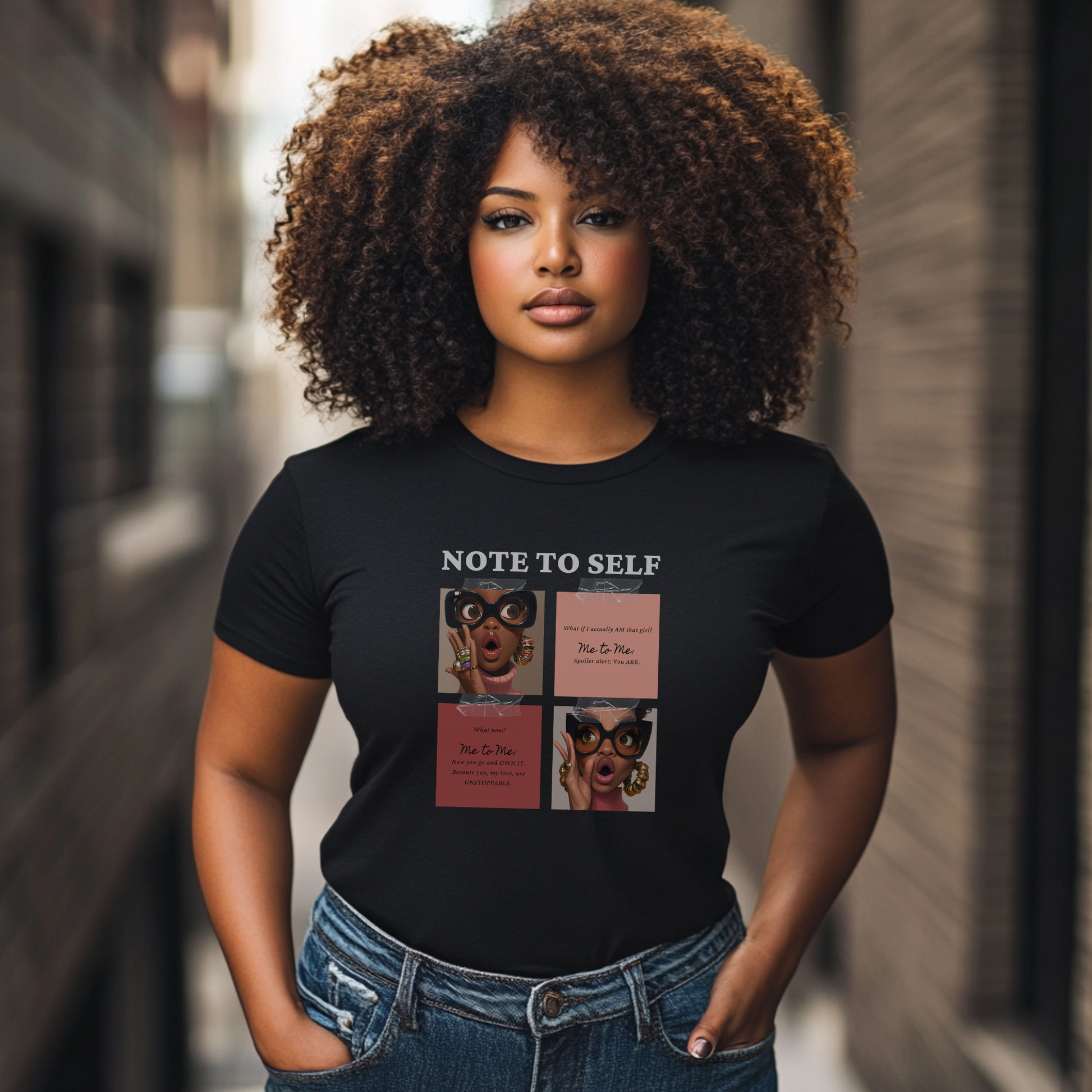 A reminder to trust your potential — our “Note to Self” design inspires you to push past doubt and prove to yourself just how powerful you are. Featuring bold art and a confidence-boosting quote, this piece is perfect for anyone chasing big dreams and unapologetically taking up space.